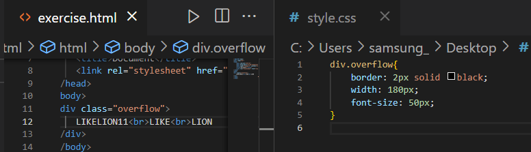 주어진 공간을 넘어가는 컨텐트를 어떻게 보여줄지를 제어합니다.
