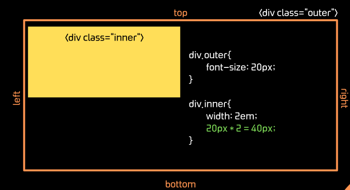 -> 상위 요소의 크기 값에 em값을 곱하기