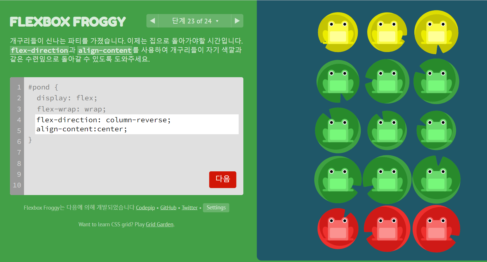 row(default), row-reverse, column, column-reverse 가 있습니다.
