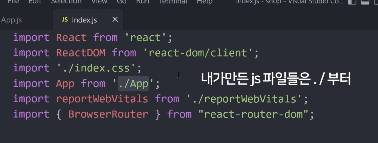 <BrowserRouter> 이걸로 <App/> 이걸 감싸면 끝입니다.